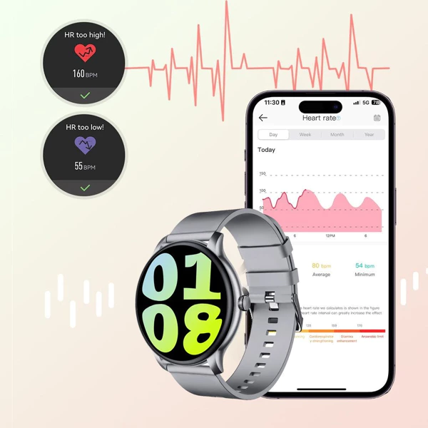 Función de llamada Bluetooth. Disfruta de la comodidad de un teclado, contactos e historial de llamadas integrados. Mantenerte conectado con el mundo nunca ha sido tan fácil, incluso en movimiento. Notificaciones inteligentes con notificaciones de mensajes personalizables, puedes mantenerte al día mientras te concentras en lo que realmente importa. Toma el control de tu vida digital de forma sencilla y eficaz. Soporte completo de formación, con numerosos modos deportivos, GPS conectado, podómetro, contador de calorías y seguimiento de distancia, este reloj inteligente será tu mejor compañero en cada movimiento. Gracias a la conectividad Bluetooth, puedes vincular fácilmente tu smartwatch con tu smartphone para recibir notificaciones, llamadas y mensajes directamente en tu muñeca. Puedes usar tu smartwatch para hacer y recibir llamadas, guardar contactos, ver tu registro de llamadas y personalizar notificaciones.